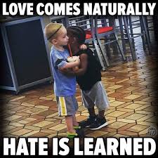What about hate? Hate is a sin, right? Do we “learn” sin or are we tempted by satan to sin? The temptation is not the sin but submitting to the temptation is the sin. If we are all born sinners due to the fall of Adam, we are born with a sin nature…not a Divine nature but a sin nature. In other words, love is not natural but hate is natural. It is satan’s job to kill, steal and destroy – that is what he does. We can blame it on society or each other all we want but when we do, we are doing satan’s job for him and destroying one another.